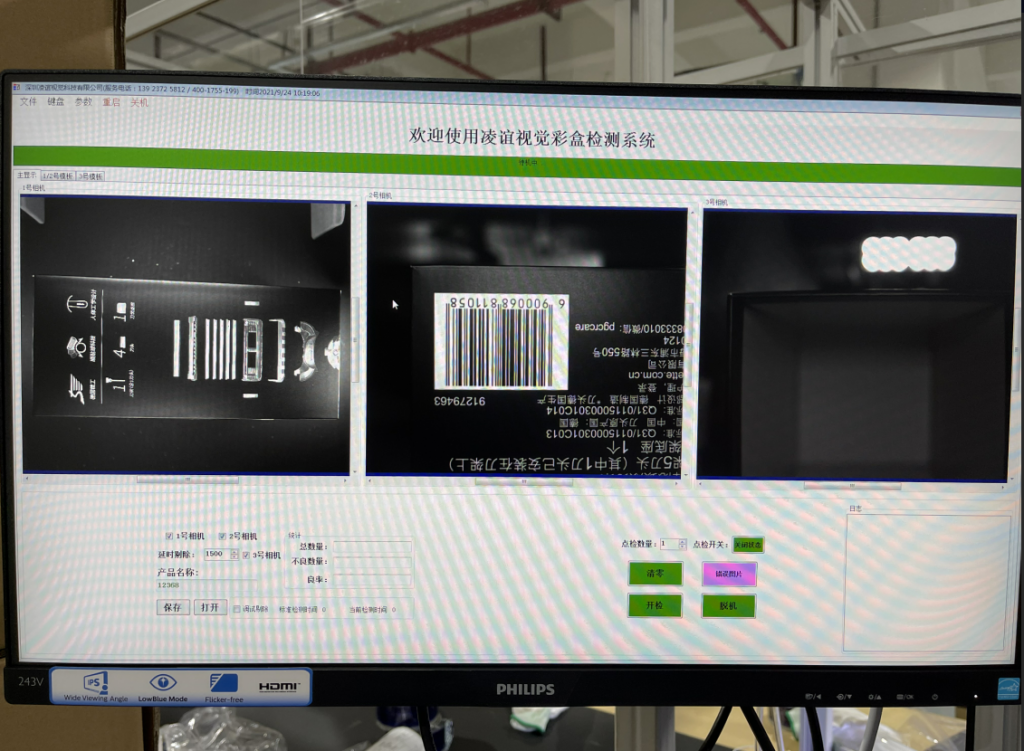 包裝盒生產(chǎn)過(guò)程中,存在子件缺失、倒裝的情況,為杜絕此類不良,在產(chǎn)線上加裝視覺(jué)檢測(cè)系統(tǒng)實(shí)時(shí)確保子件的正確裝配。在產(chǎn)品完成組裝進(jìn)入包裝環(huán)節(jié)前需要對(duì)產(chǎn)品二維碼進(jìn)行識(shí)別,防止混款,出貨前需要對(duì)彩盒的外觀多面進(jìn)行全檢,防止印刷不良、燙金不良、燙銀不良的產(chǎn)品流出,此彩盒外觀檢測(cè)系統(tǒng)針對(duì)如上不良做出針對(duì)性的檢測(cè),從根源上杜絕不良品的流出導(dǎo)致的客戶投訴。